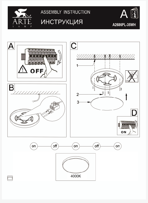 Характеристики Светильник накладный светодиодный Arte Lamp A2686PL-35WH