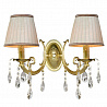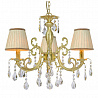 Осветительный прибор великолепно использовать в помещении в стилистике классика. Каркас из металла, цвет золотой, подвески прозрачные, плафоны белые из текстиля. Светильник обладает степенью защиты от воды IP20.