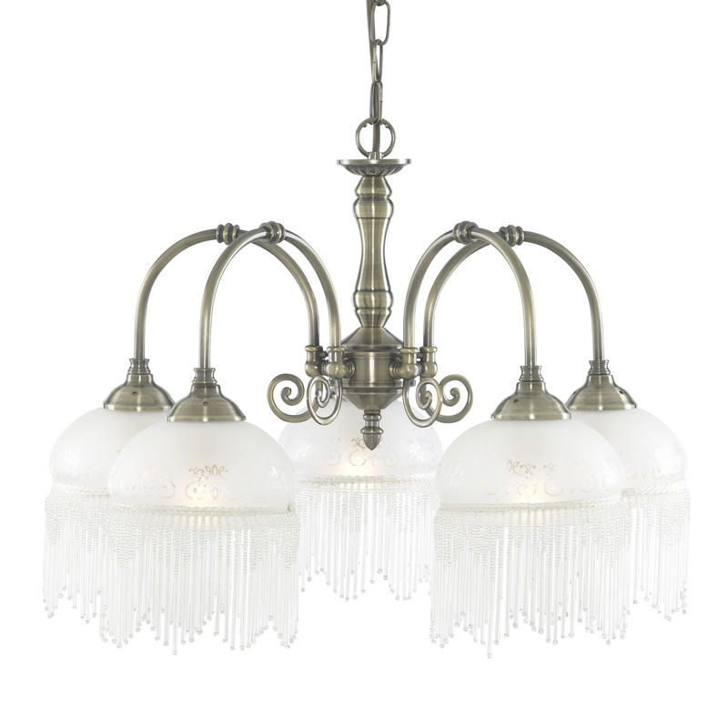 Данную люстру великолепно использовать в комнате,выполненном в стиле классика. Каркас из металла, цвет бронзовый, подвески белые, плафоны белые из стекла. Люстра имеет защиту IP20.