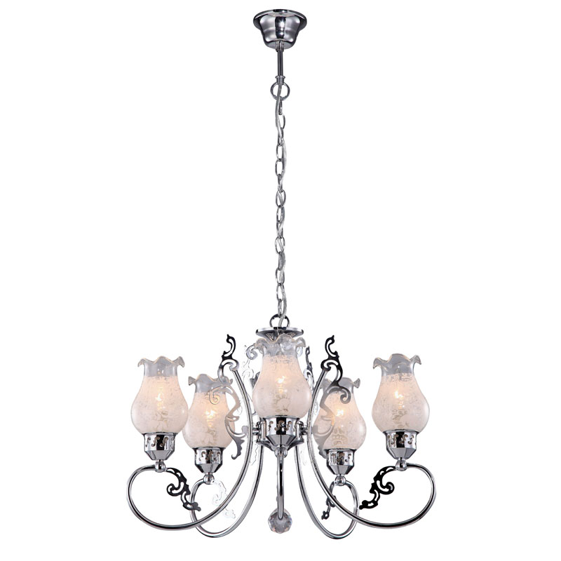 Данный осветительный прибор отлично использовать в интерьере,выполненном в стилистике классика и кантри. Основание из металла, цвет хромированный, подвески прозрачные, плафоны белые и прозрачные из стекла. Люстра имеет защиту от воды IP20.