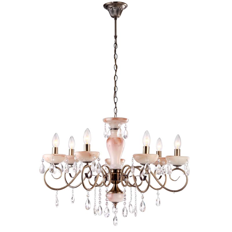 Данный осветительный прибор оптимально подвесить в помещении,выполненном в стиле классика. Основание из металла, цвет бронзовый, подвески прозрачные, плафоны белые и коричневые из керамика. Люстра имеет защиту от воды IP20.