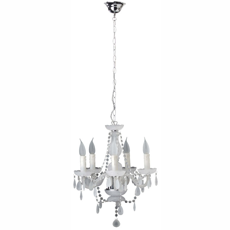 Люстру идеально установить в интерьере в стилистике классика. Основание из металла и стекла, цвет белый, подвески белые, плафоны белые из стекла. Светильник имеет степень защиты от воды IP20.