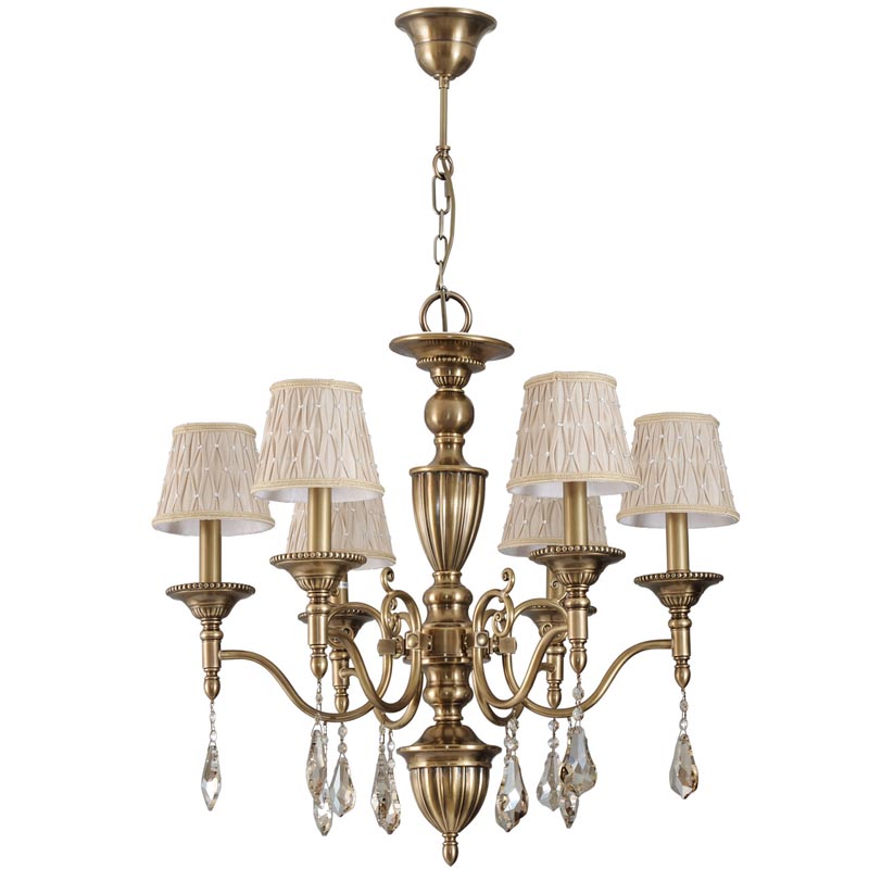 Этот осветительный прибор идеально использовать в комнате, выдержанном в стилистике классика. Основание из металла и хрусталя, цвет золотой и прозрачный, подвески прозрачные, плафоны розовые из текстиля. Светильник имеет степень защиты IP20.
