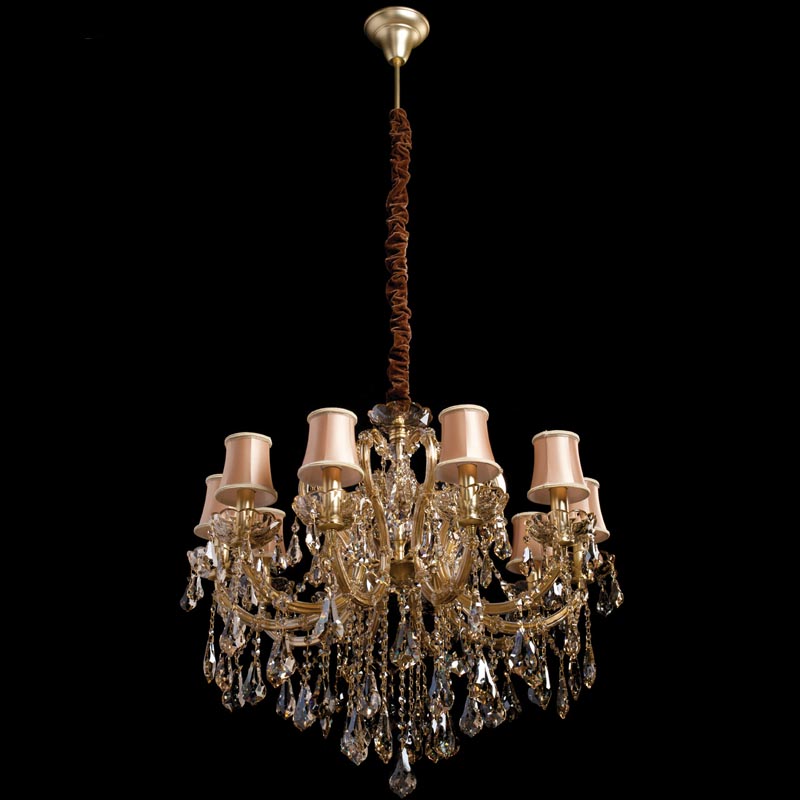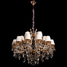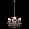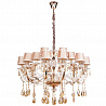 Люстру великолепно установить в интерьере в стилистике классика и прованс. Арматура из металла и стекла, цвет золотой и прозрачный, подвески янтарные, плафоны оранжевые из текстиля. Люстра имеет степень защиты от воды IP20.
