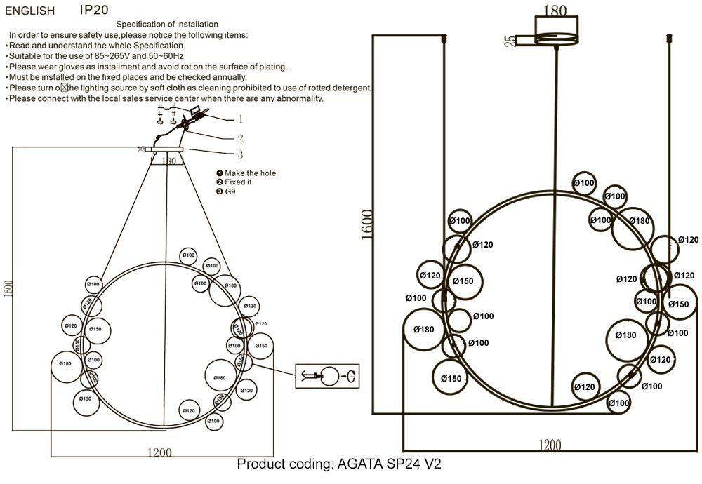 Характеристики Люстра большая галогеновая Crystal Lux Agata SP24 V2 Black/Transparente