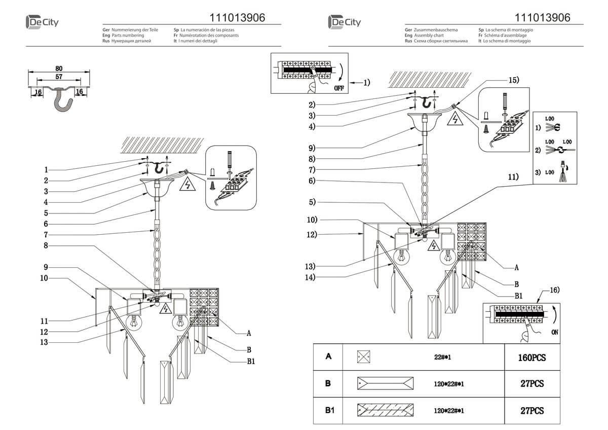 Характеристики Люстра подвесная хрустальная De Markt 111013906