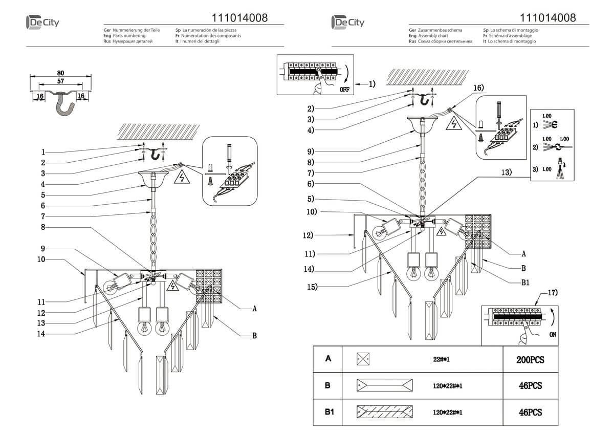 Характеристики Люстра подвесная хрустальная De Markt 111014008