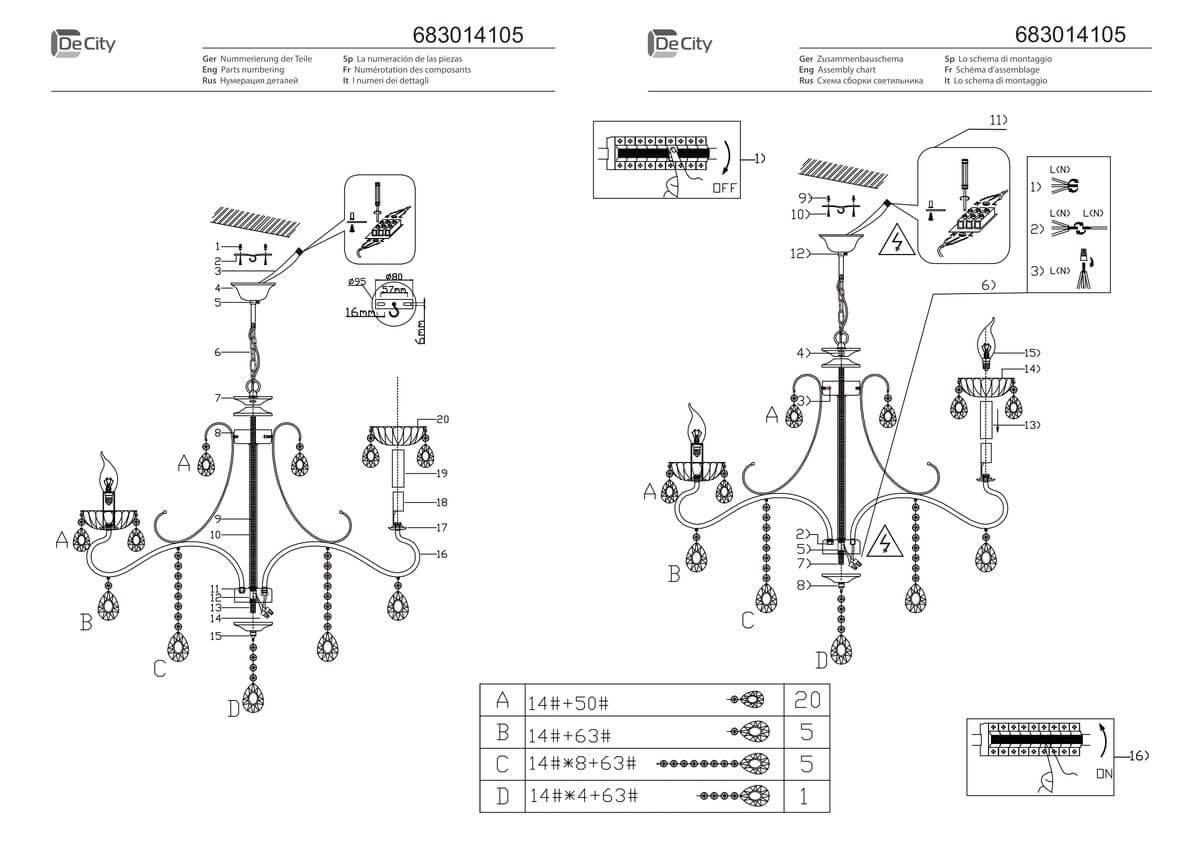 Характеристики Люстра подвесная хрустальная De Markt 683014105
