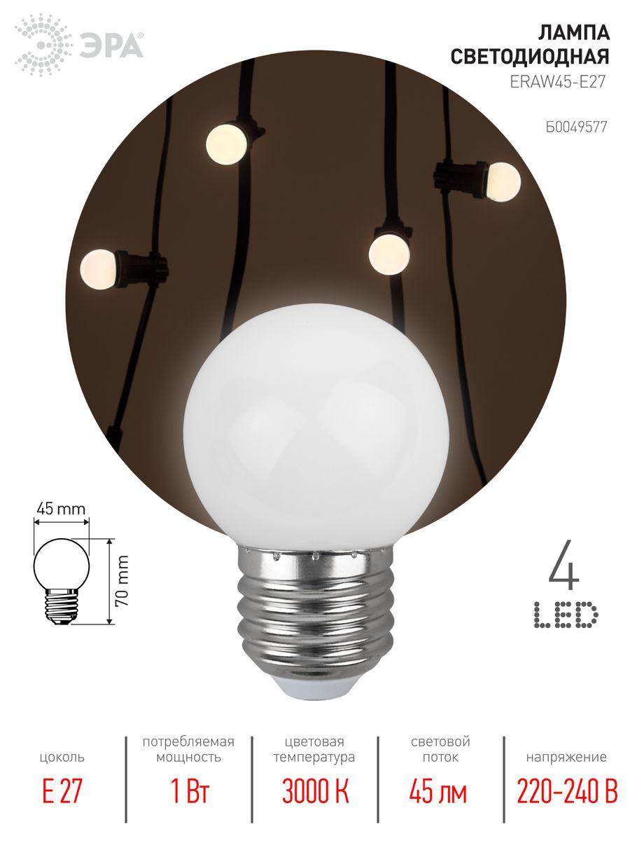 Характеристики Лампа декоративная ЭРА ERAW45-E27