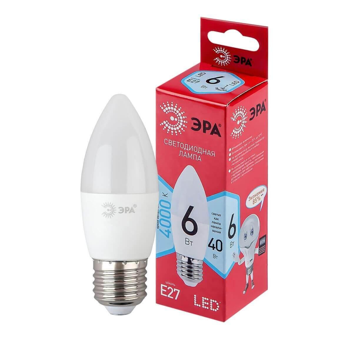 Характеристики Лампа ЭРА LED B35-6W-840-E27 R