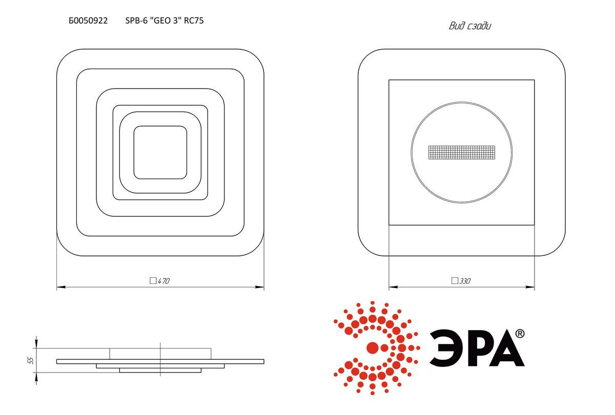 Характеристики Светильник потолочный светодиодный ЭРА SPB-6 Geo 3 RC75 с пультом д/у