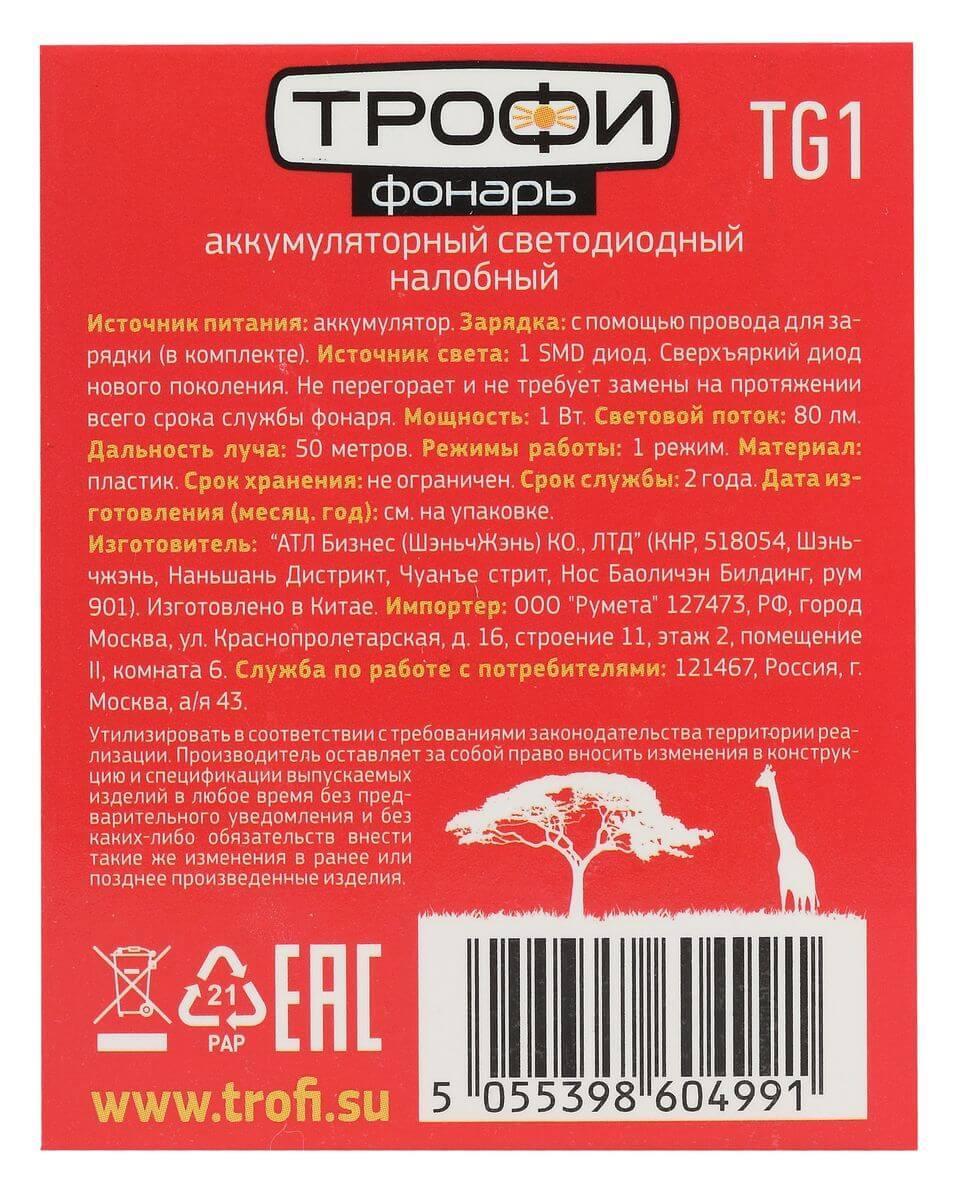 Характеристики Уличный светильник фонарик ЭРА TG1