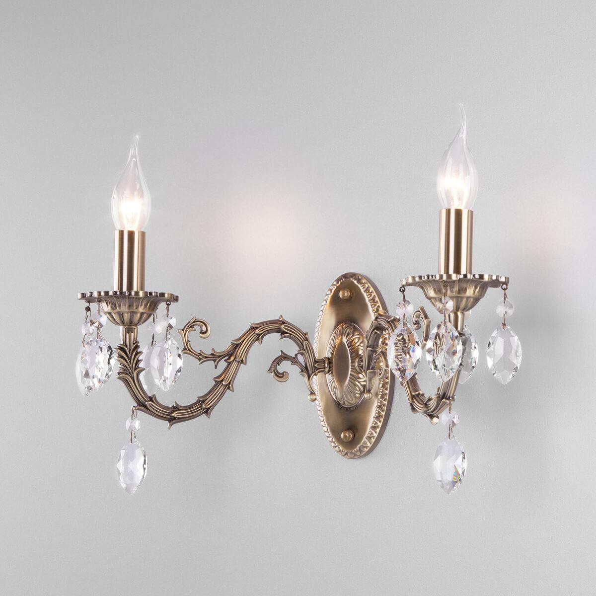 Светильник настенный Eurosvet 10102/2 античная бронза/прозрачный хрусталь Strotskis