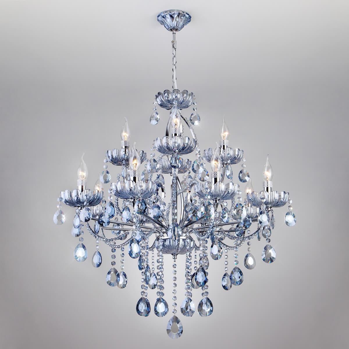 Люстра подвесная хрустальная Eurosvet 3015/12 хром/лазурный хрусталь Strotskis