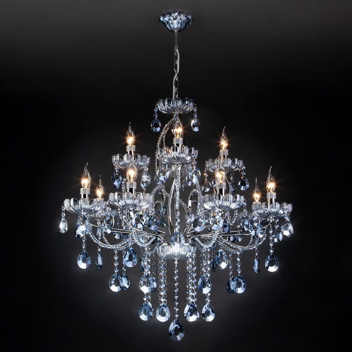 Характеристики Люстра подвесная хрустальная Eurosvet 3015/12 хром/лазурный хрусталь Strotskis