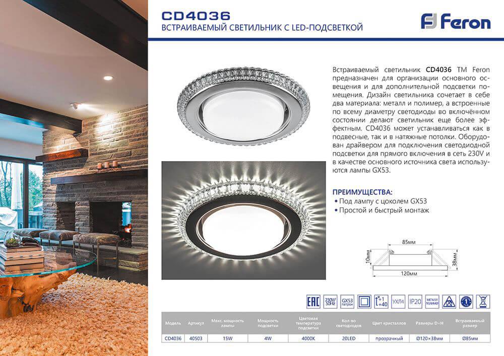 Характеристики Светильник встраиваемый Feron 40503
