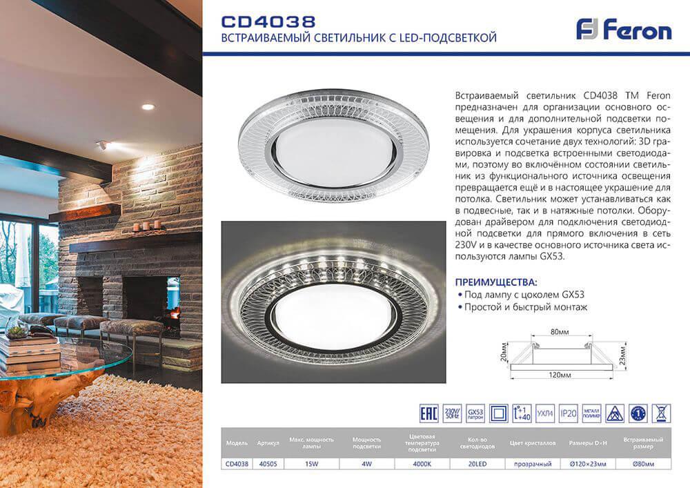 Характеристики Светильник встраиваемый Feron 40505