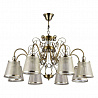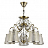 Эту люстру великолепно использовать в комнате,выдержанном в стиле классика. Арматура из металла, цвет бронзовый, подвески прозрачные, плафоны прозрачные и бронзовые из пластика и текстиля. Светильник имеет степень защиты от воды IP20.