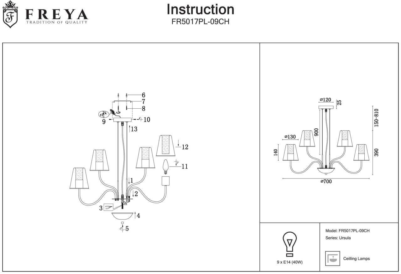 Характеристики Люстра подвесная Freya FR5017PL-09CH