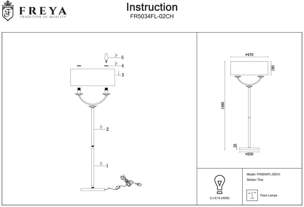 Характеристики Торшер декоративный Freya FR5034FL-02CH