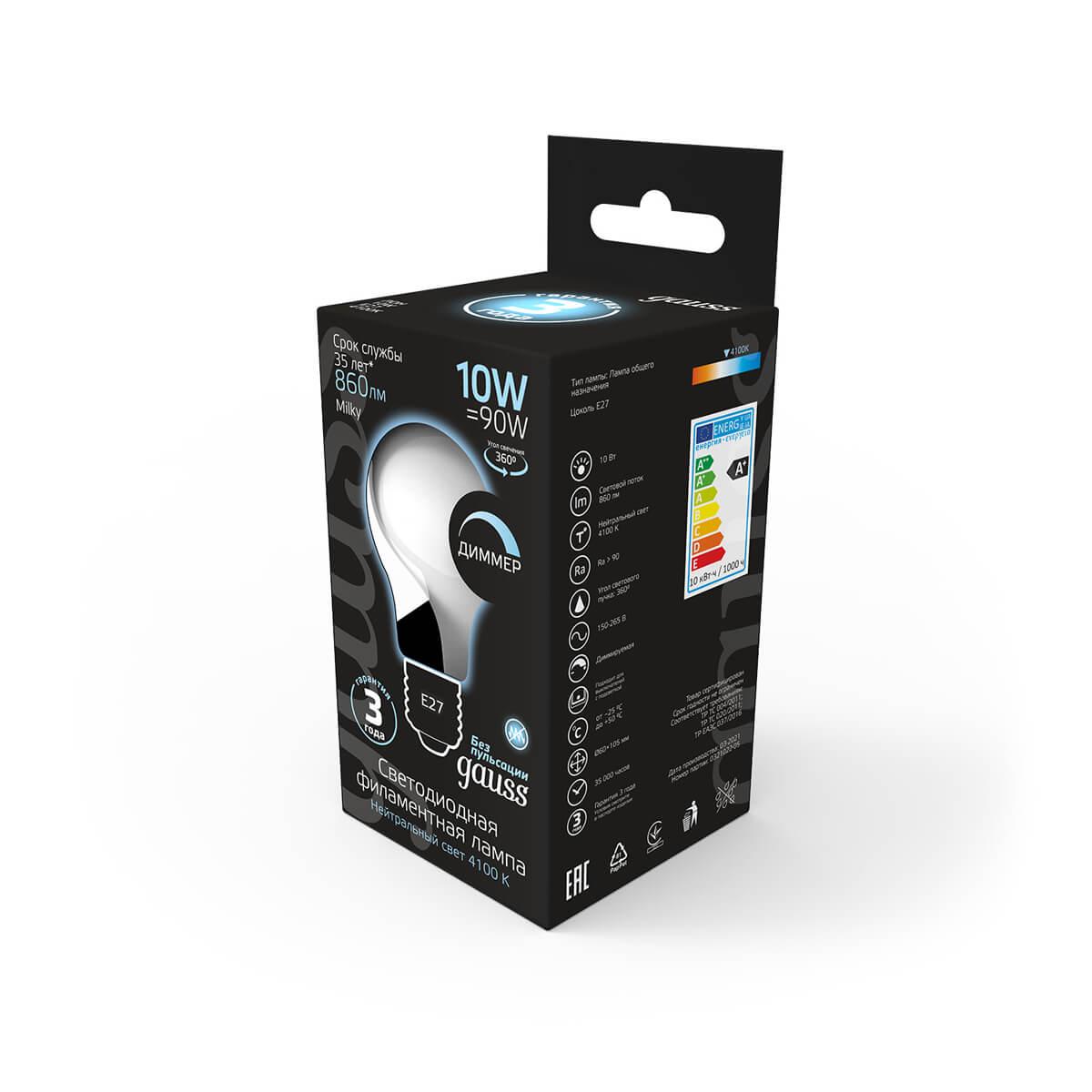 Характеристики Лампа филаментная Gauss 102202210-D