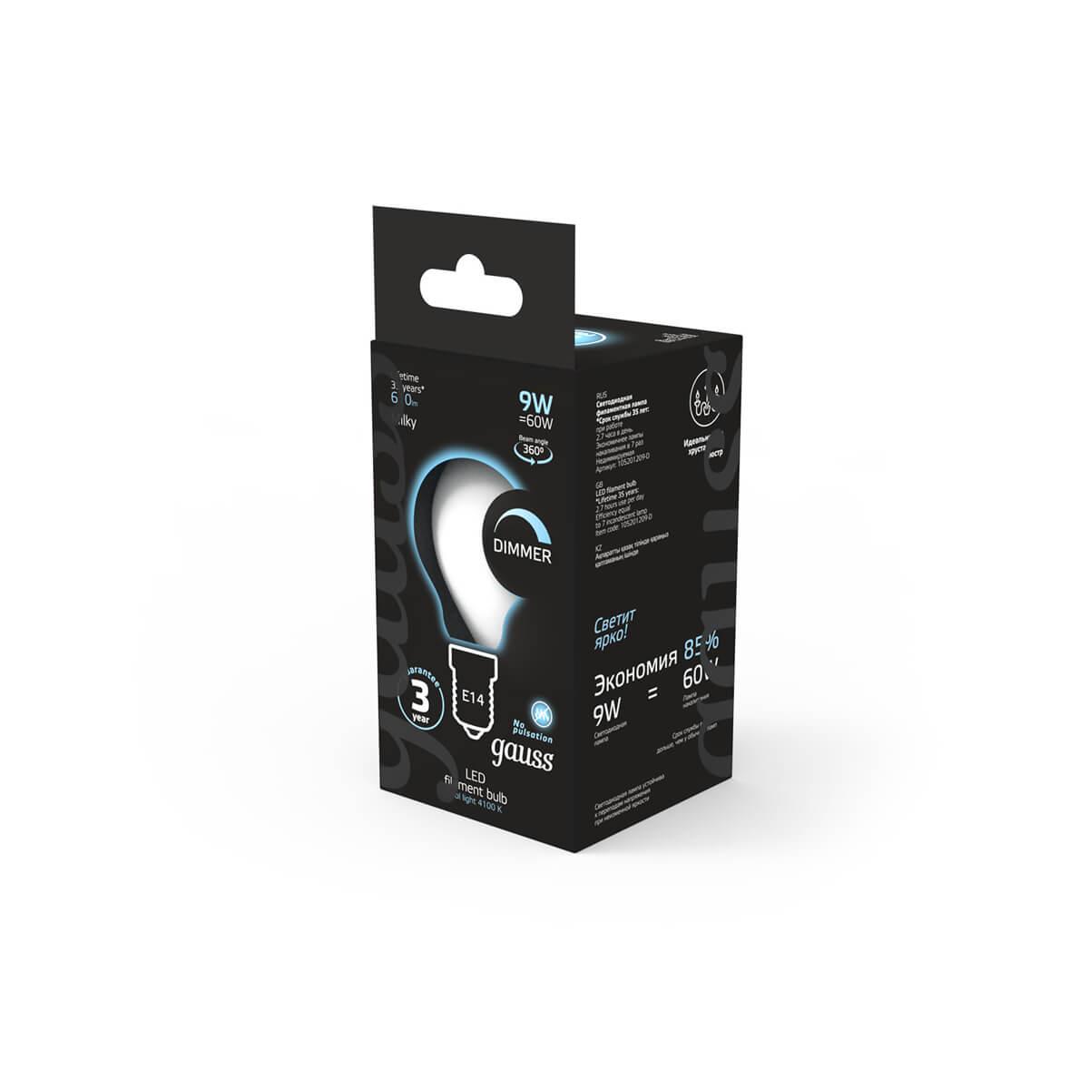 Характеристики Лампа филаментная Gauss 105201209-D
