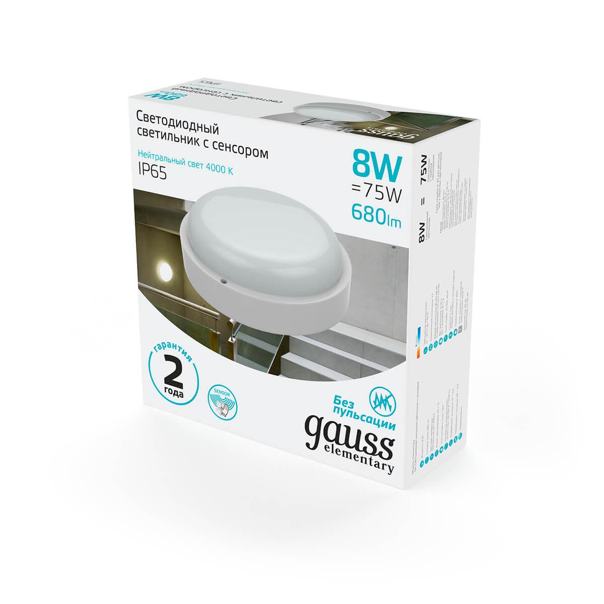 Характеристики Светильник настенно-потолочный светодиодный Gauss 126411208-S