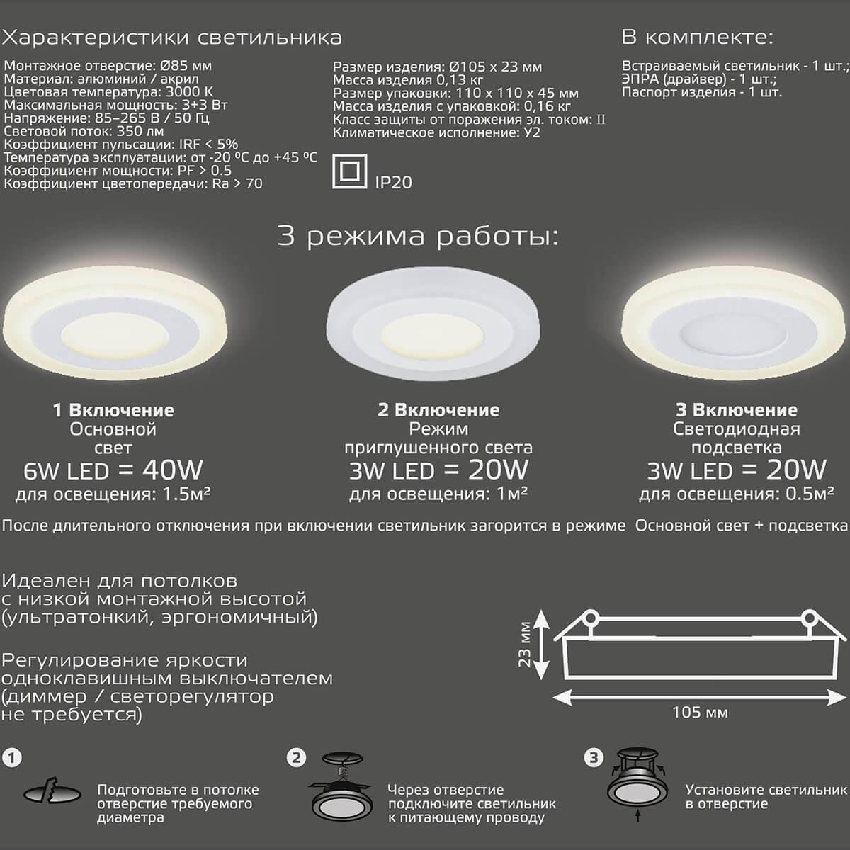 Gauss, Россия Точечный светильник встраиваемый светодиодный Gauss 939111315 Есть в наличии 1 099 Руб.