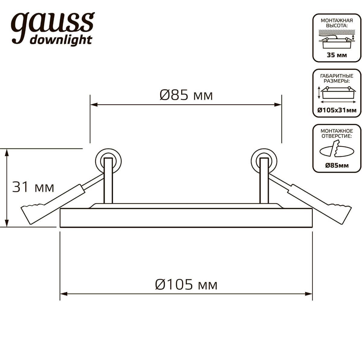 Gauss, Россия Точечный светильник встраиваемый светодиодный Gauss 939111318 Есть в наличии 1 329 Руб.