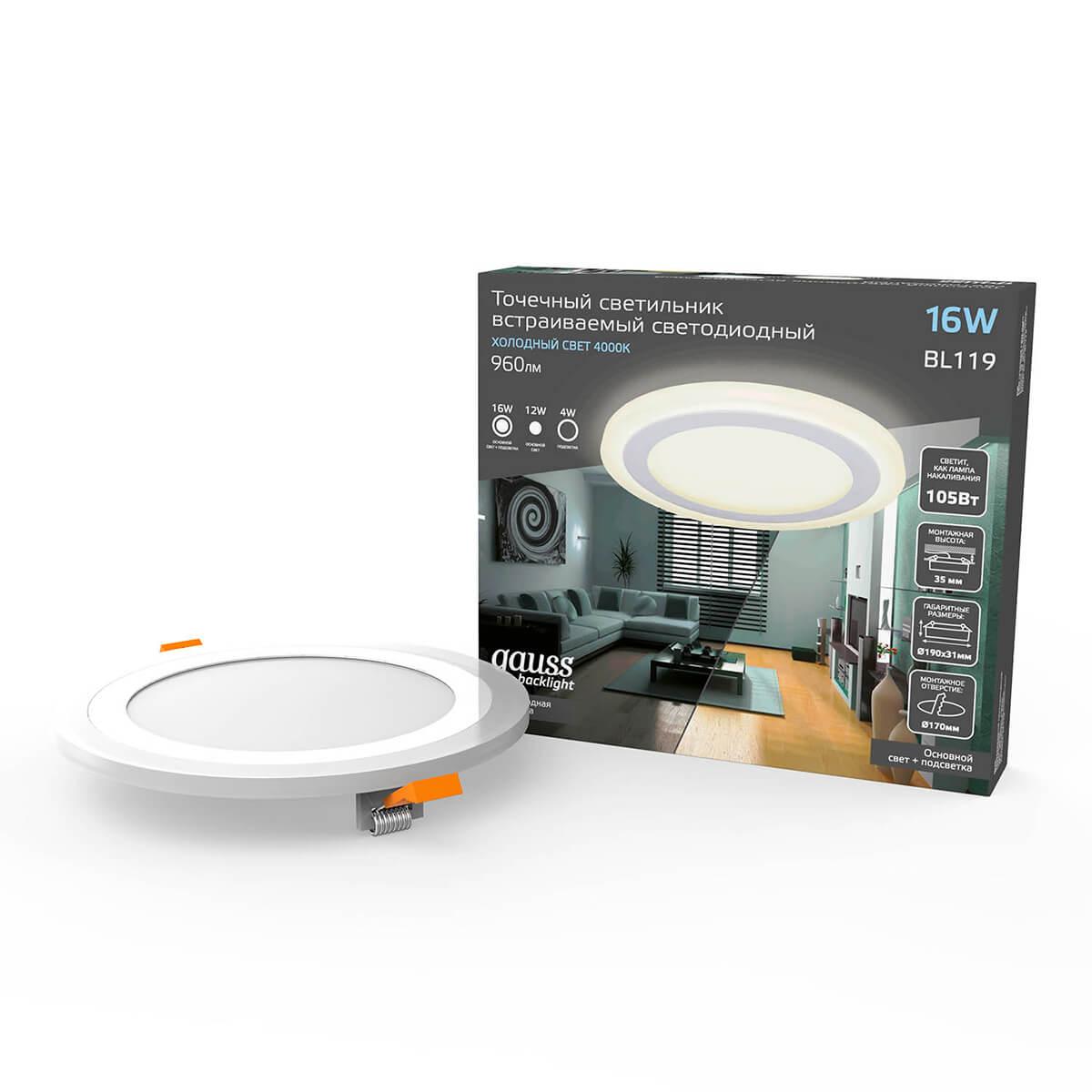 Характеристики Светильник встраиваемый светодиодный Gauss BL119