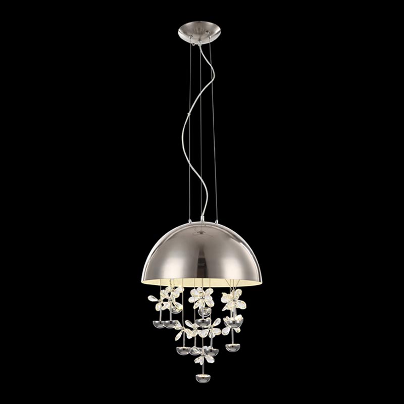 Люстру оптимально установить в помещении,выдержанном в стиле модерн. Каркас из металла, цвет хромированный, подвески прозрачные, плафоны хромированные из металла. Светильник имеет степень защиты от воды IP20.
