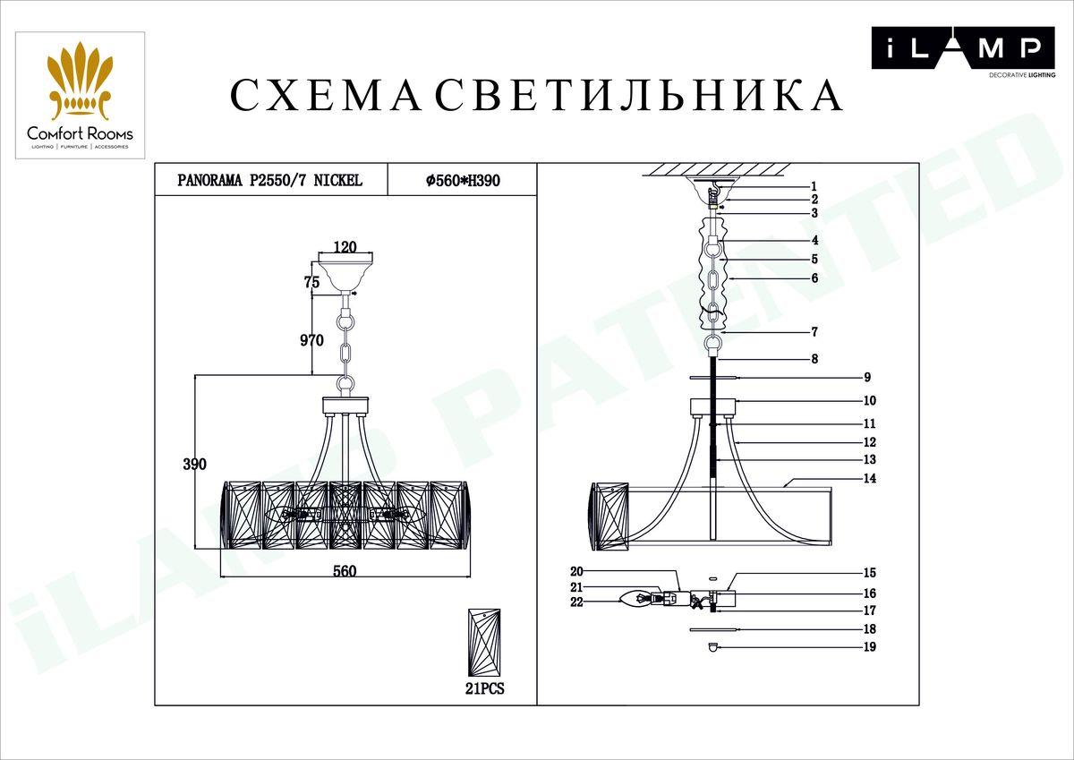 Характеристики Люстра подвесная iLamp P2550-7 NIC