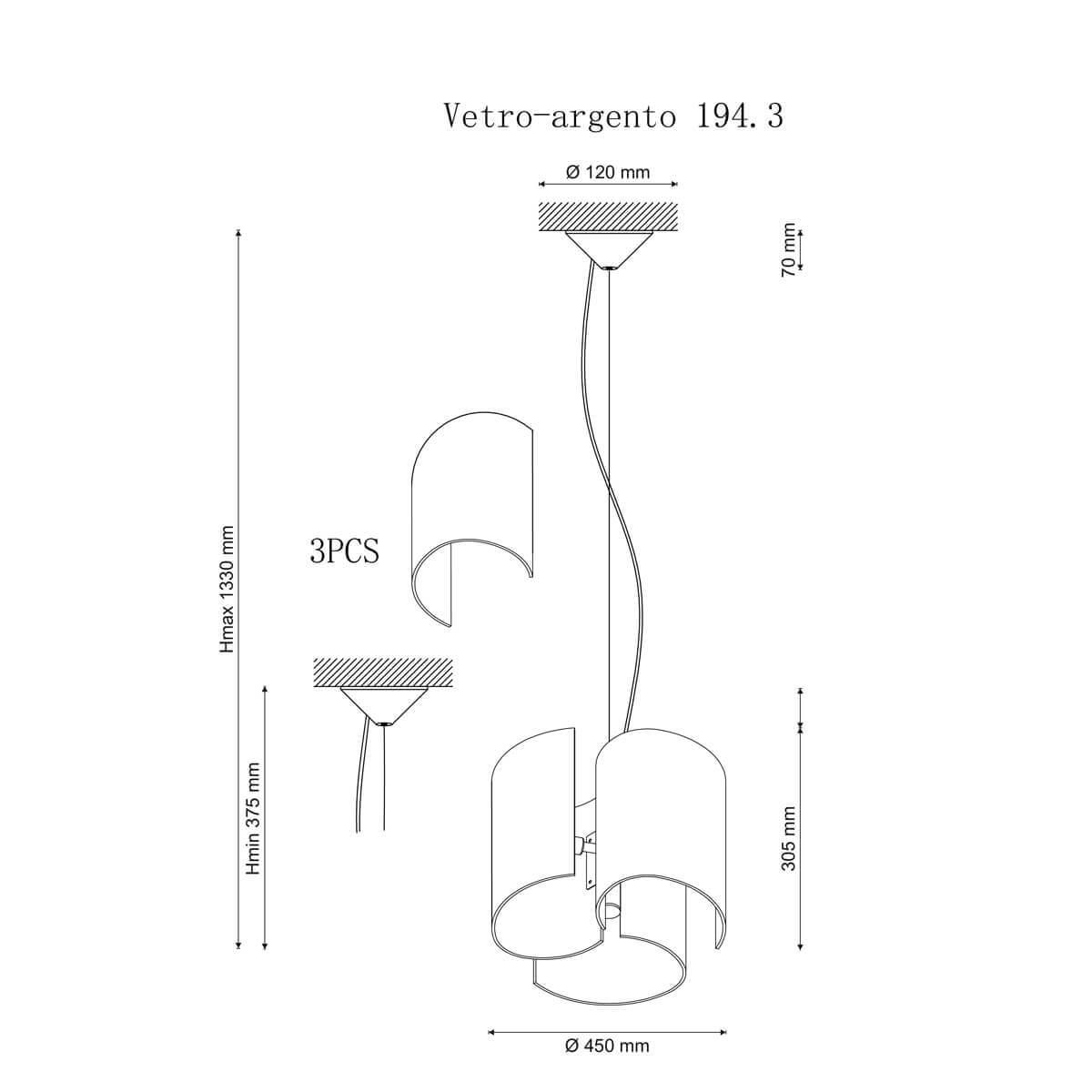 Характеристики Светильник подвесной Lucia Tucci Vetro-argento 194.3