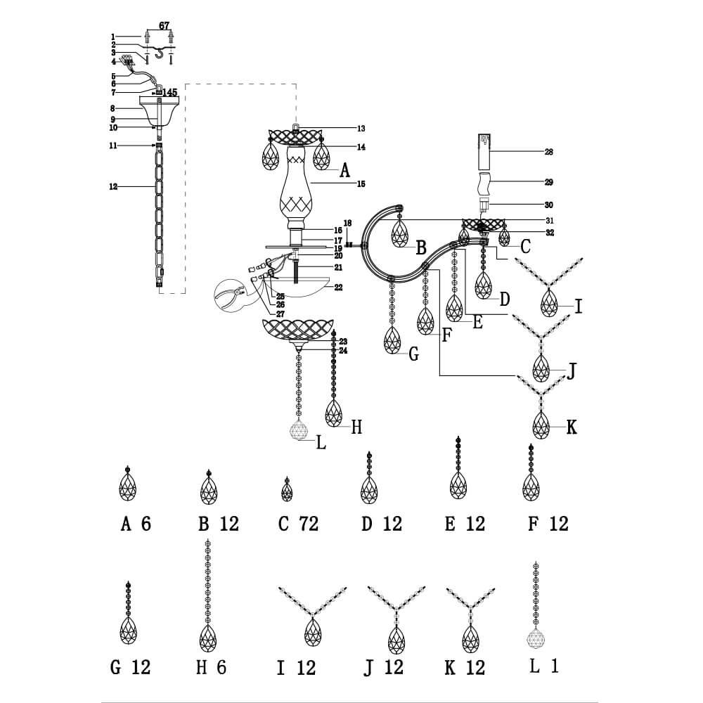 Характеристики Люстра подвесная хрустальная Lumien Hall LH0026/12H-CR