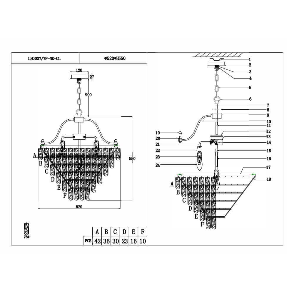 Характеристики Люстра подвесная хрустальная Lumien Hall LH0037/7P-NK-CL