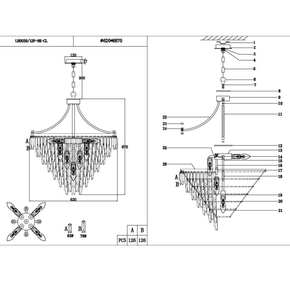 Характеристики Люстра подвесная хрустальная Lumien Hall LH0039/13P-NK-CL