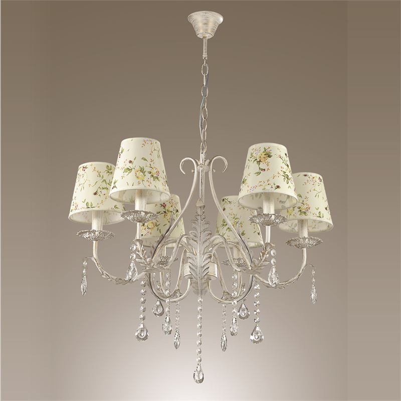 Данную люстру превосходно использовать в интерьере в стилистике классика и прованс. Основание из металла, цвет белый и золотой, подвески белые, плафоны белые из стекла. Светильник имеет защиту от воды IP20.