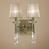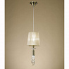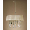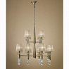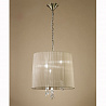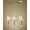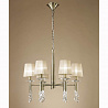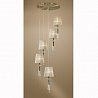 Люстру превосходно подвесить в помещении в стилистике модерн. Основание из металла, цвет бронзовый, подвески прозрачные, плафоны бежевые из текстиля. Люстра имеет степень защиты от воды IP20.