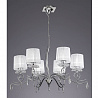 Осветительный прибор хорошо использовать в помещении в стилистике модерн. Основание из металла, цвет белый и хромированный, подвески прозрачные, плафоны белые из текстиля. Светильник имеет защиту IP20.
