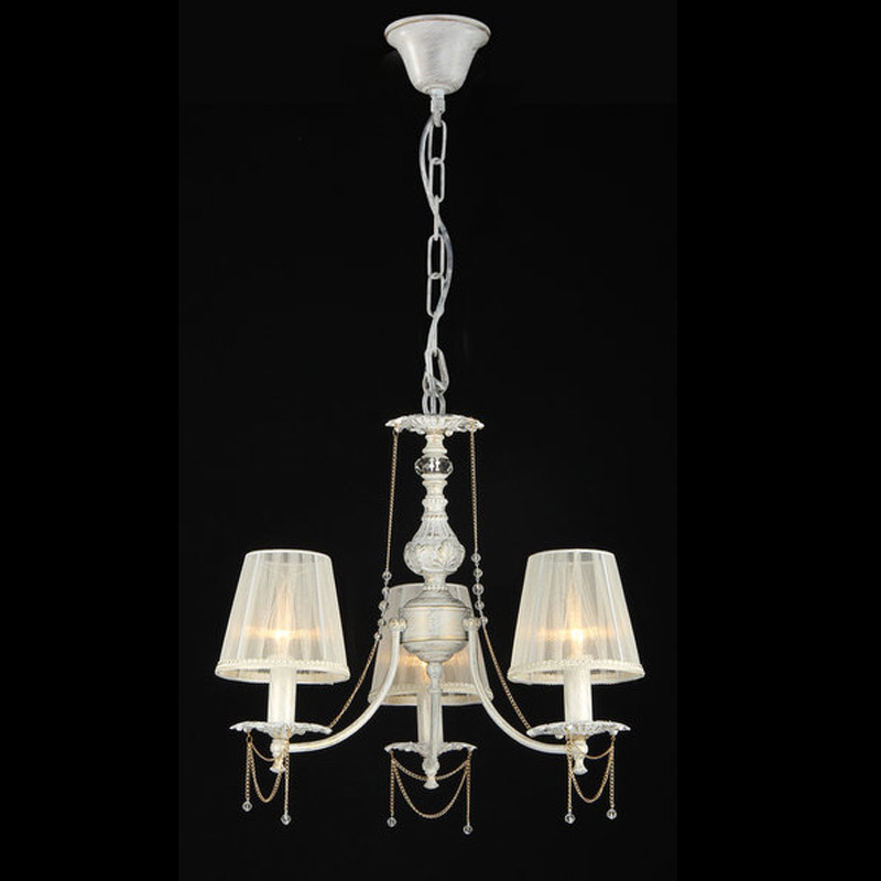 Этот осветительный прибор оптимально установить в помещении, выдержанном в стилистике прованс и классика. Каркас из металла, цвет белый, подвески прозрачные, плафоны белые из текстиля. Светильник имеет защиту IP20.