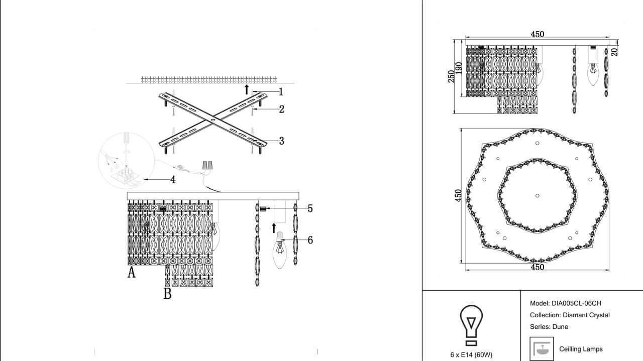 Характеристики Люстра потолочная хрустальная Maytoni DIA005CL-06CH
