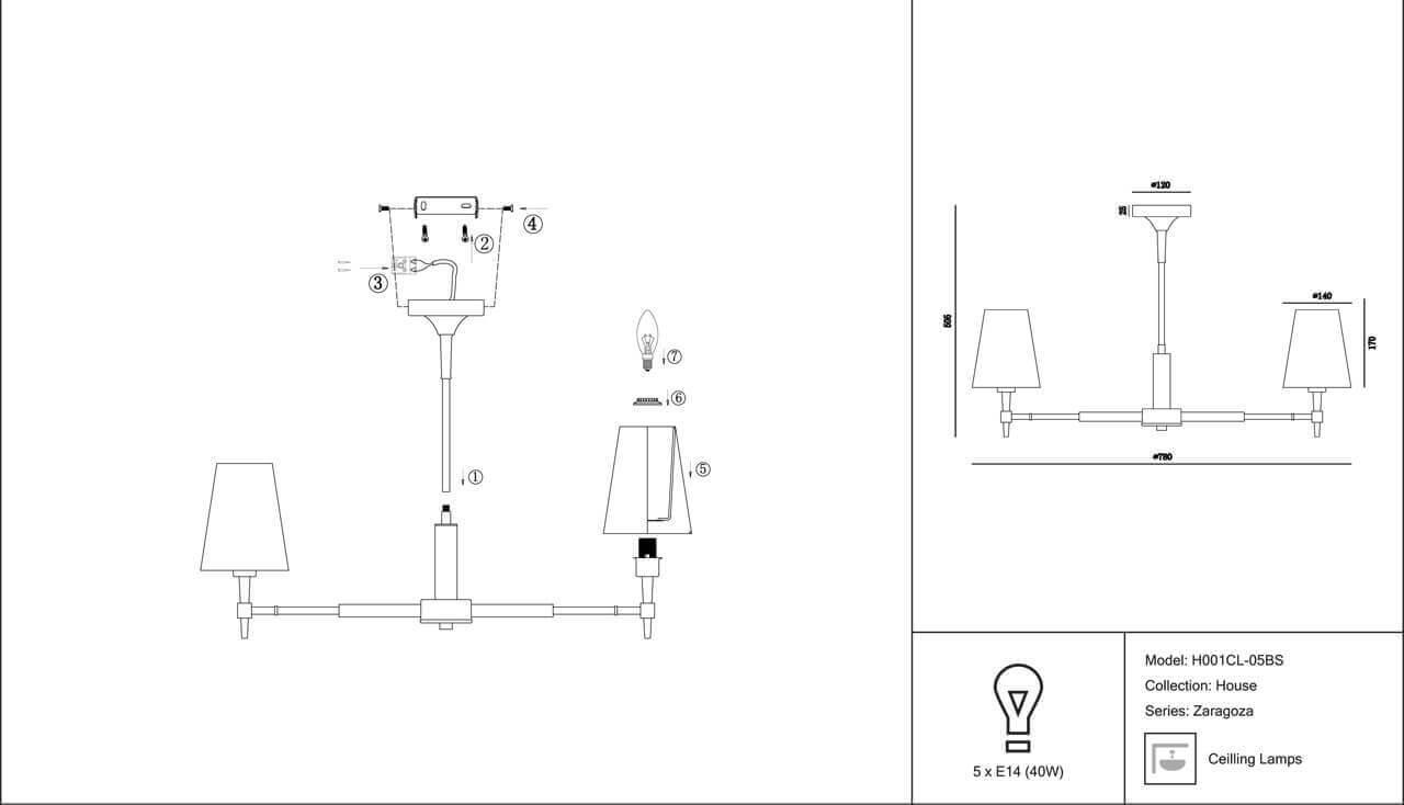 Характеристики Люстра на штанге Maytoni H001CL-05BS