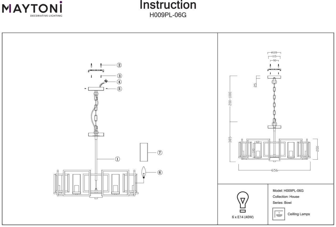 Характеристики Люстра подвесная Maytoni H009PL-06G