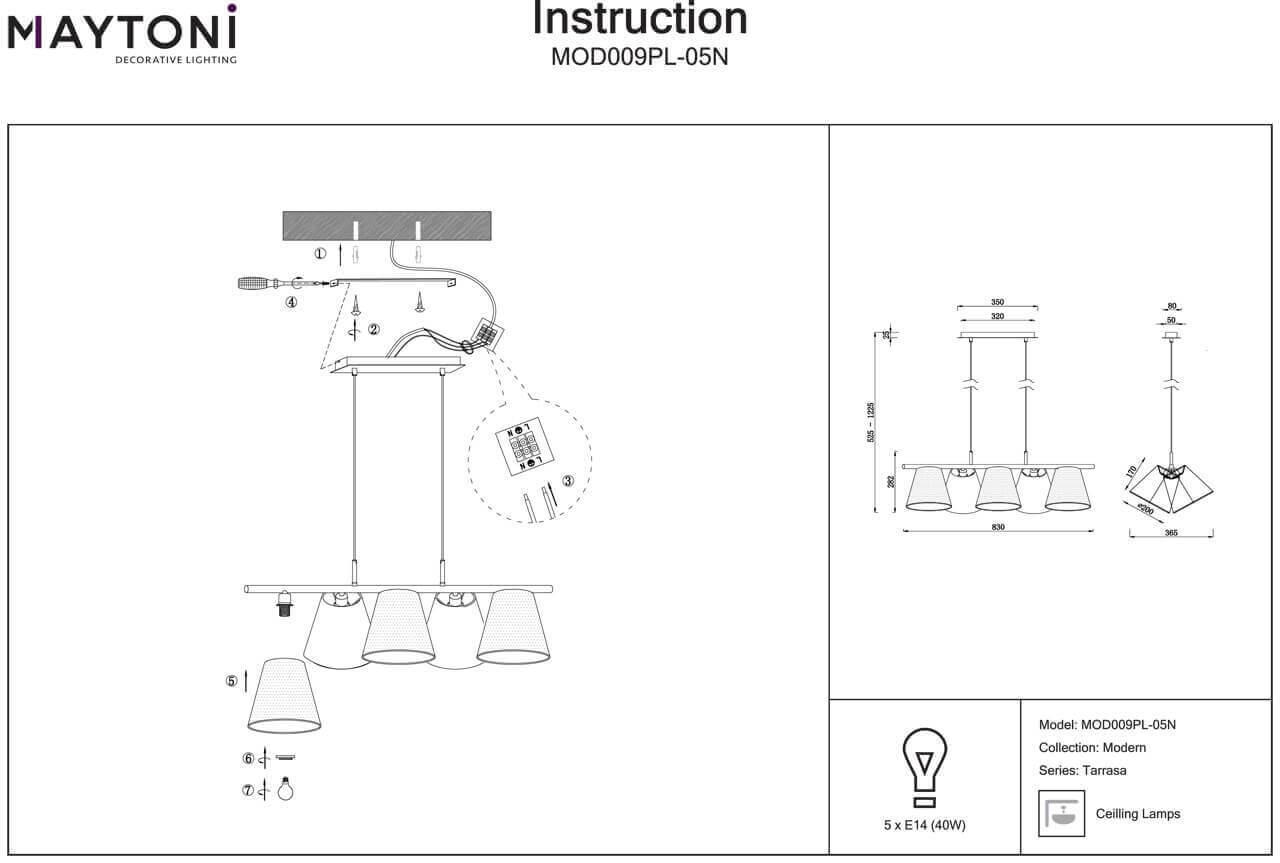 Характеристики Люстра подвесная Maytoni MOD009PL-05N
