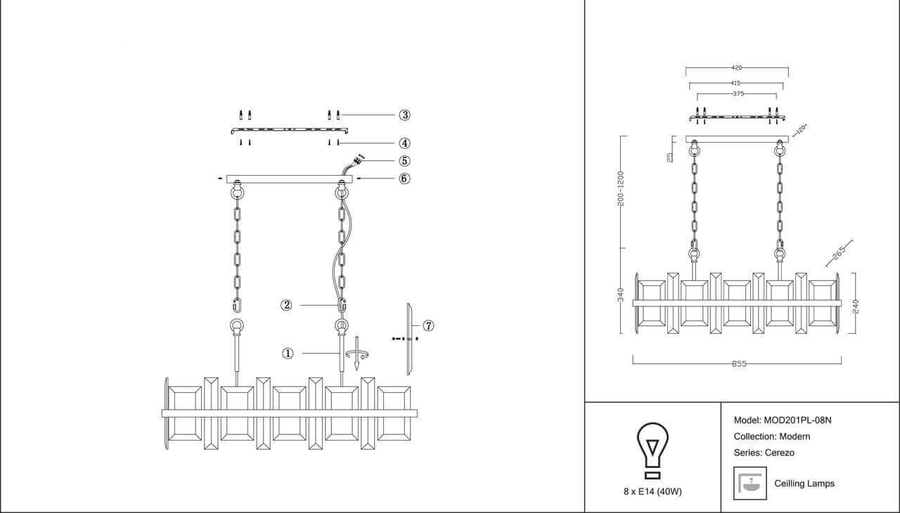 Характеристики Люстра подвесная Maytoni MOD201PL-08N