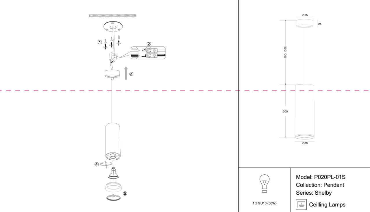 Характеристики Светильник подвесной Maytoni P020PL-01S