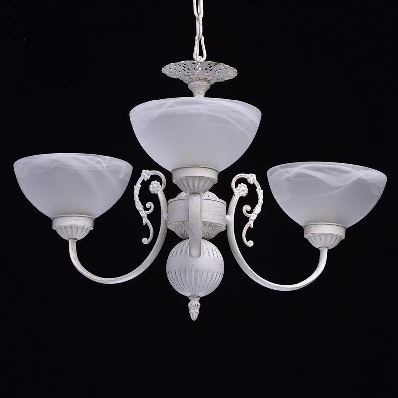 Этот осветительный прибор хорошо использовать в интерьере,выполненном в стилистике классика. Основание из металла, цвет белый и золотой, подвески прозрачные, плафоны белые из стекла. Светильник имеет степень защиты IP20.