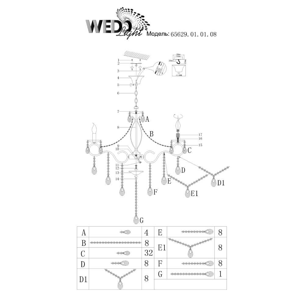 Характеристики Люстра подвесная Seven Fires 65629.01.01.08
