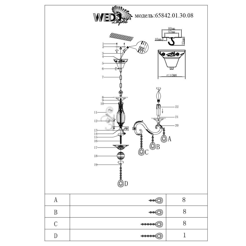 Характеристики Люстра подвесная хрустальная Seven Fires 65842.01.30.08