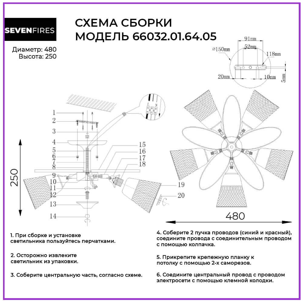Характеристики Люстра потолочная Seven Fires 66032.01.64.05